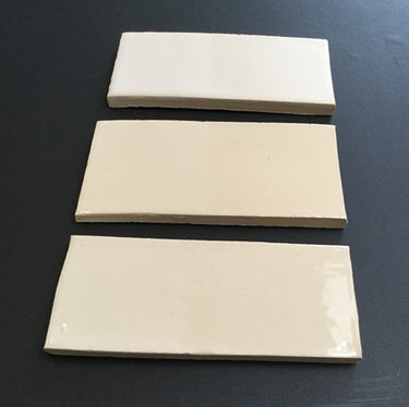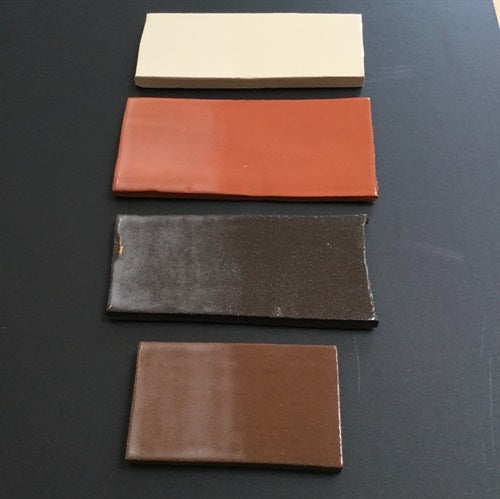 På bild 3 kan du se hur glasyren ser ut på olika typer av lera. Vänster sida har målats med två lager och höger sida har fått ett enda lager.