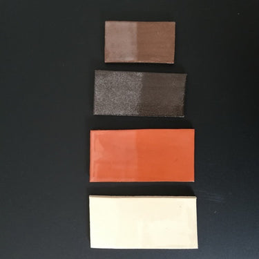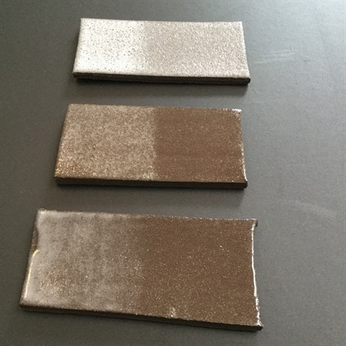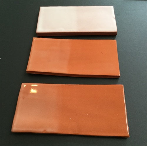 På bild 3 kan du se hur glasyren ser ut på olika typer av lera. Vänster sida har målats med två lager och höger sida har fått ett enda lager.