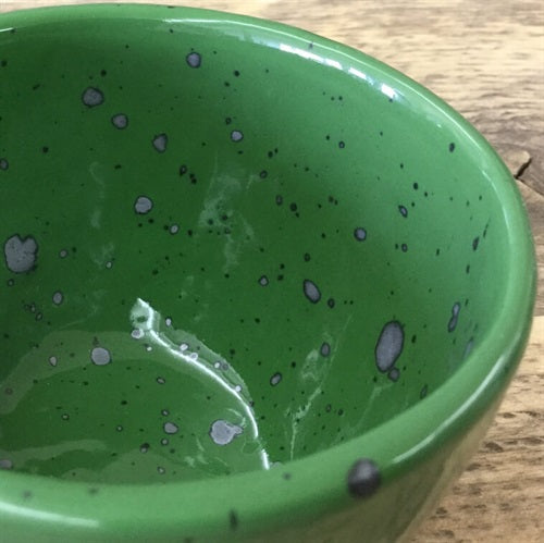 - Glänsande klargrön med metalliska glimmerfläckar