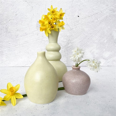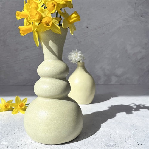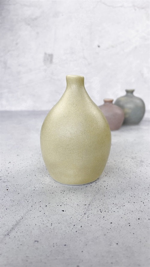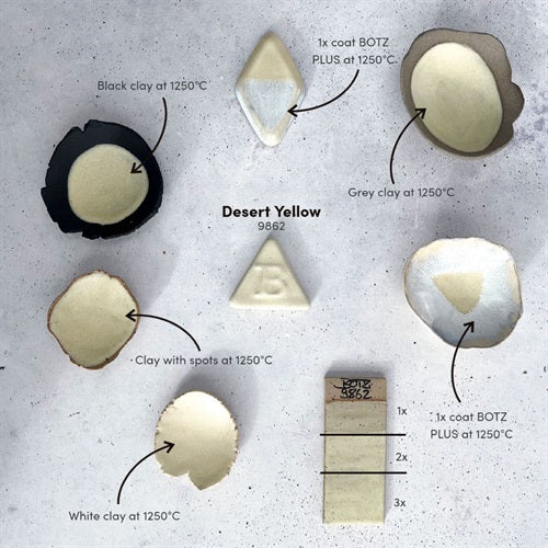 - Siden-matt, ljus stengodsglasyr i mjuk gul med fina effekter