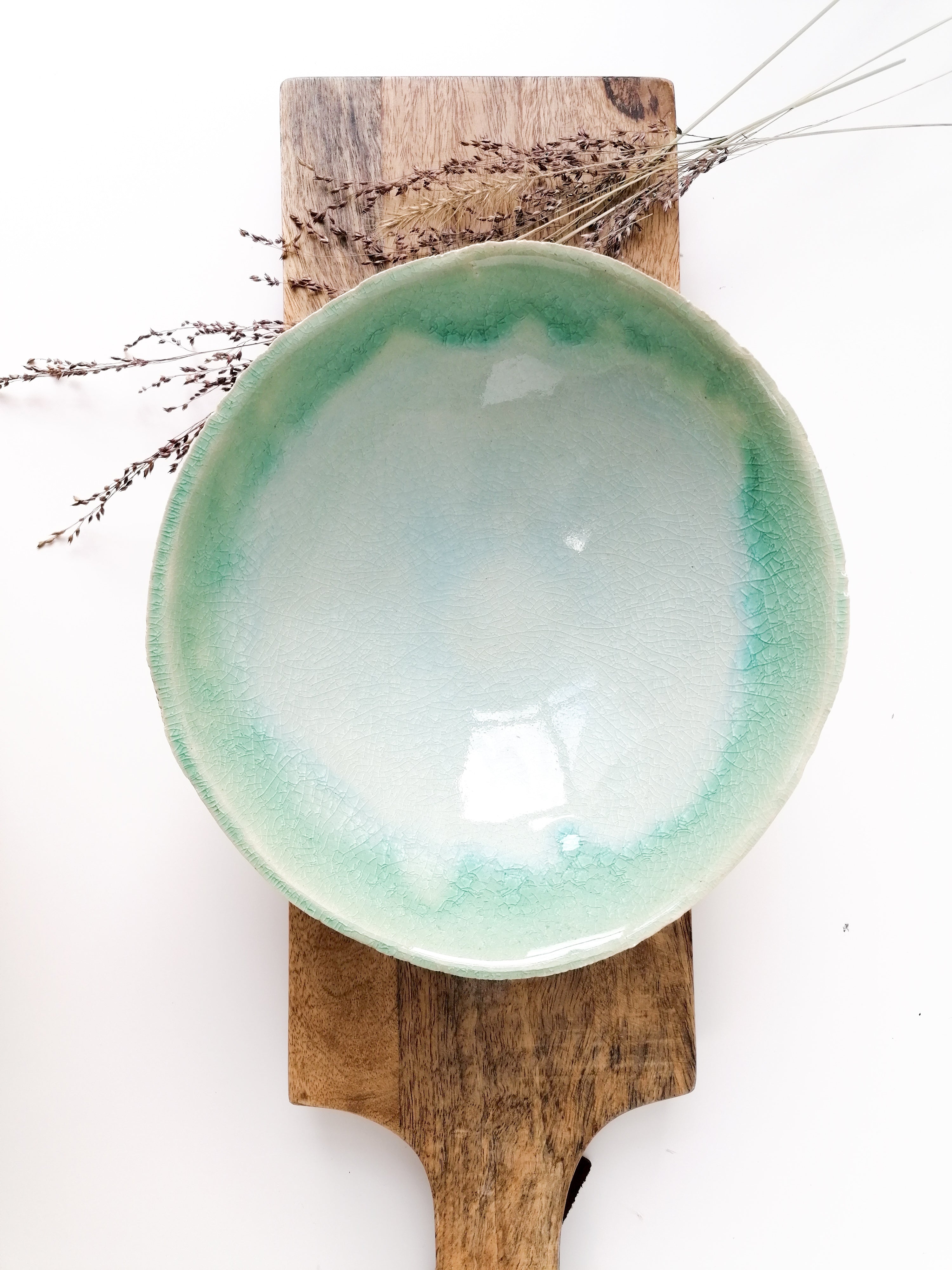 9868 Glacier är en semitransparent, glasliknande stengodsglasyr med en ljus blå ton och fina krackeleringar. Glasyren ger ett naturligt uttryck som varierar vackert beroende på bränningstemperaturen. Den är lätt att arbeta med och lämpar sig både för dekoration och större ytor på stengods.
