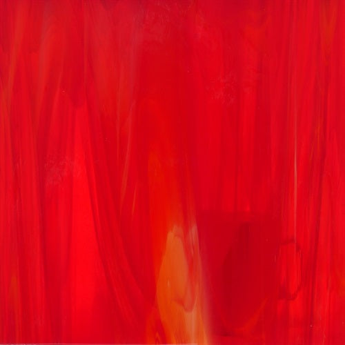 Halvtransparent glas i varmröd ton med vita inslag