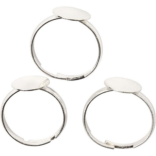 Justerbar Fingerringplatta ø10mm silverpläterad, 3 st.