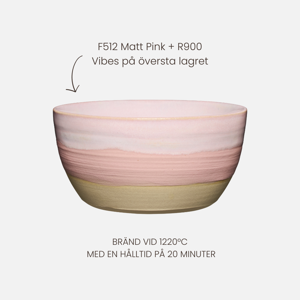 F512 Matt Pink är en modern, matt och rosa glasyr som kan användas både till porslin och stengods. Glasyren ger ett lugnt, dämpat och elegant uttryck med en matt till halvmatt yta som låter formen och hantverket träda tydligt fram. Alla STUDIOLINE-glasyrer tillverkas i England av material av hög kvalitet och är utvecklade för att vara extremt hållbara, lätta att arbeta med och flexibla i sin användning.