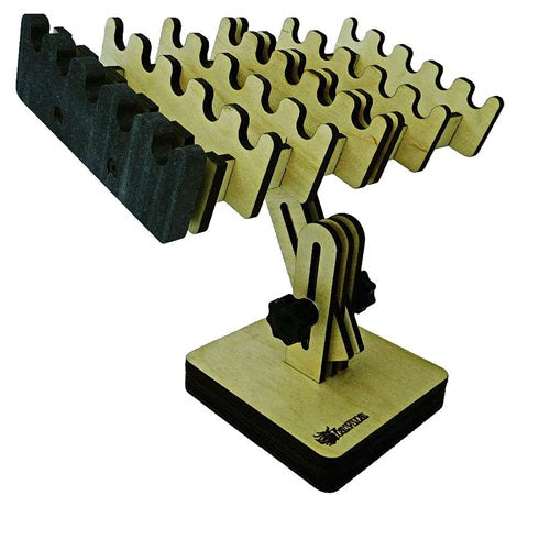 Sitter du bakom lågan och jobbar kan du med fördel placera hållaren framför lågan, så att stavarna ändå får lite värme medan du jobbar*. Ena sidan av hållaren är gjord av grafik och kan därför ta extra värme. Hållaren kan justeras i både höjd och vinkel.