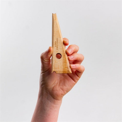 Den smala och raka formen på Foot 4 gör det lätt att skjuta in den under alla keramiska föremål för att skapa en fot. Den platta botten av detta verktyg gör att du kan hålla det stadigt mot ditt slagträ, medan de små utskärningarna på ändarna skapar en rundad fot på botten av ditt arbetsstycke medan du fortfarande vrider. Våra fotverktyg är också bra som ribbor eftersom du kan använda alla sidor av dem för att hjälpa till att dra, jämna och forma din lera.