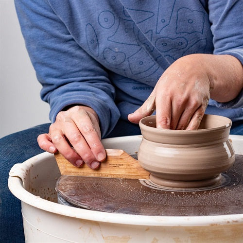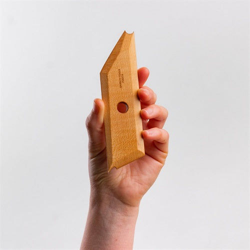Den platta botten av detta keramiska verktyg gör att du kan hålla det stadigt mot ditt slagträ, medan de små utskärningarna i ändarna skapar en rundad fot eller en långsträckt fot i botten av ditt arbetsstycke medan du fortfarande svänger. Våra fotverktyg är också bra som ribbor eftersom du kan använda alla sidor av dem för att hjälpa till att dra, jämna och forma din lera.