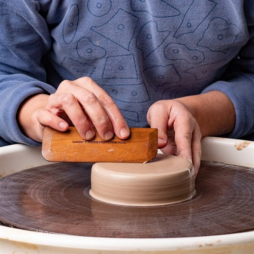Med fyra olika hörnprofiler och plana sidor som hjälper dig att komprimera och dra leran, låter Fishstick Tool dig hålla ditt projekt rent, centrerat och slätt ända ner till de inre hörnen. Fishstick-verktyget kan se enkelt ut, men det är extremt mångsidigt och kommer att bli en standard på din drejskiva.