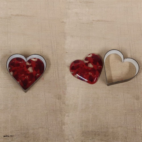 Fyll formen med 7-9 mm glas, gärna ett tjockare lager i mitten av formen. Det är en smaksak vilken kornstorlek som används fritt , men vi rekommenderar inte pulver. Använd också gärna överblivet glas. Fyll formen mer eller mindre, beroende på vilket uttryck det färdiga glaset ska ha.