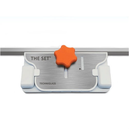 Skenan klickas fast i slipmaskinen och du kan sedan justera den så att den passar exakt med bredden på glaset du vill slipa kanten på.