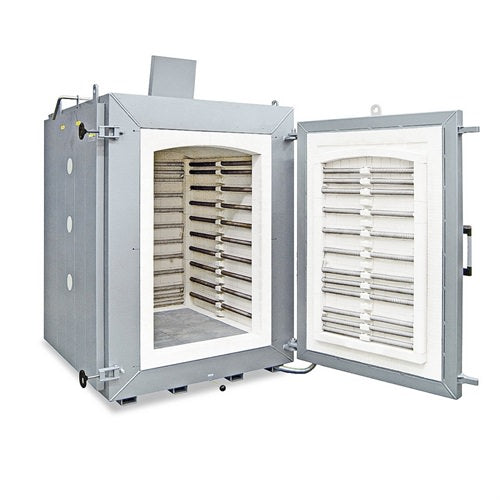 porslin och stengods , även med mycket tätt packade föremål och temperaturer upp till 1340 °C. Dessa ugnar används både i