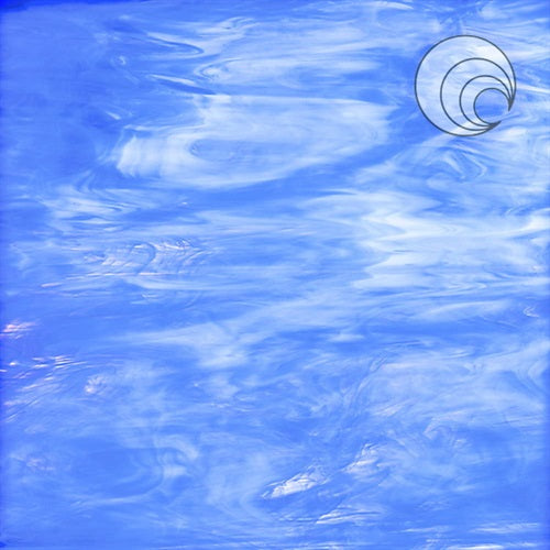 Halvtransparent glas i en dämpad blå färg blandat med vitt