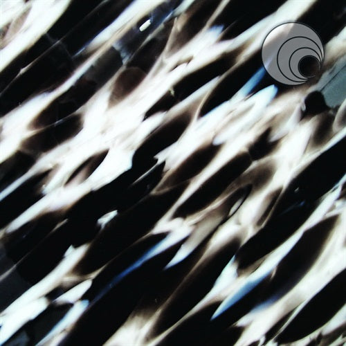 Svart och elfenben opaliserande glas på en klar bas